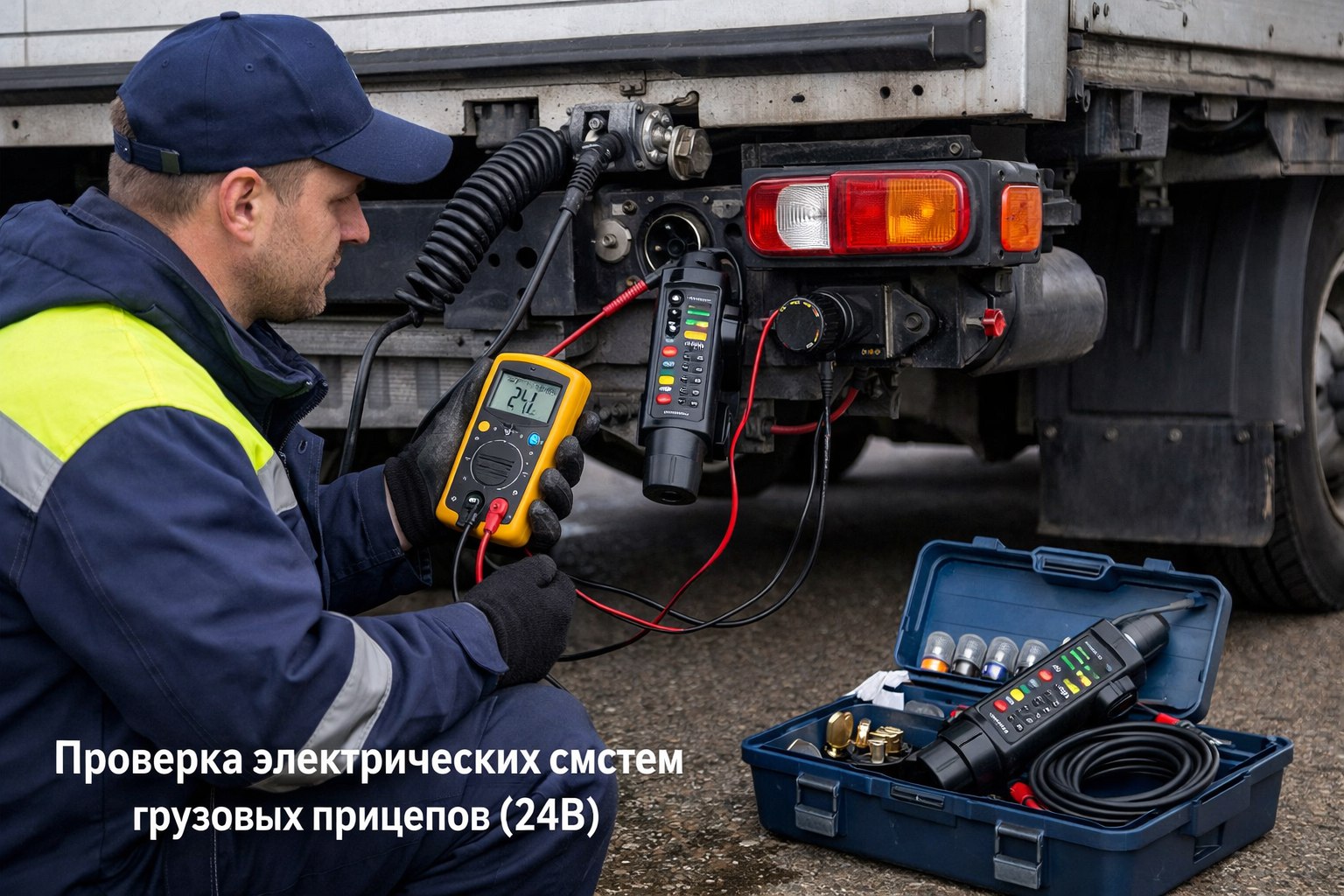 да мы ремонтируем и тестируем электрооборудование грузовых прицепов и полуприцепов, есть возможность выезда к вам.